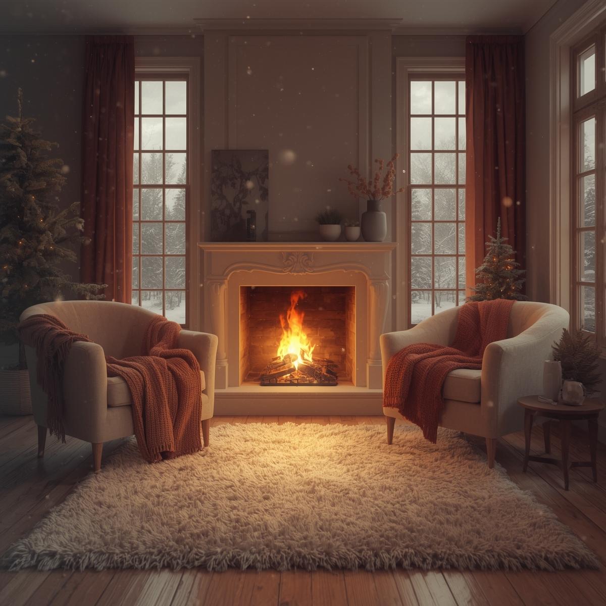 If you have a fireplace, winter is its time to shine. A glowing fire naturally draws people together, making it the focal point of the room. Even without a working fire, you can style the mantel with candles, lanterns, or garlands of greenery to add seasonal character. A stack of logs or a basket of blankets by the hearth completes the cosy picture.