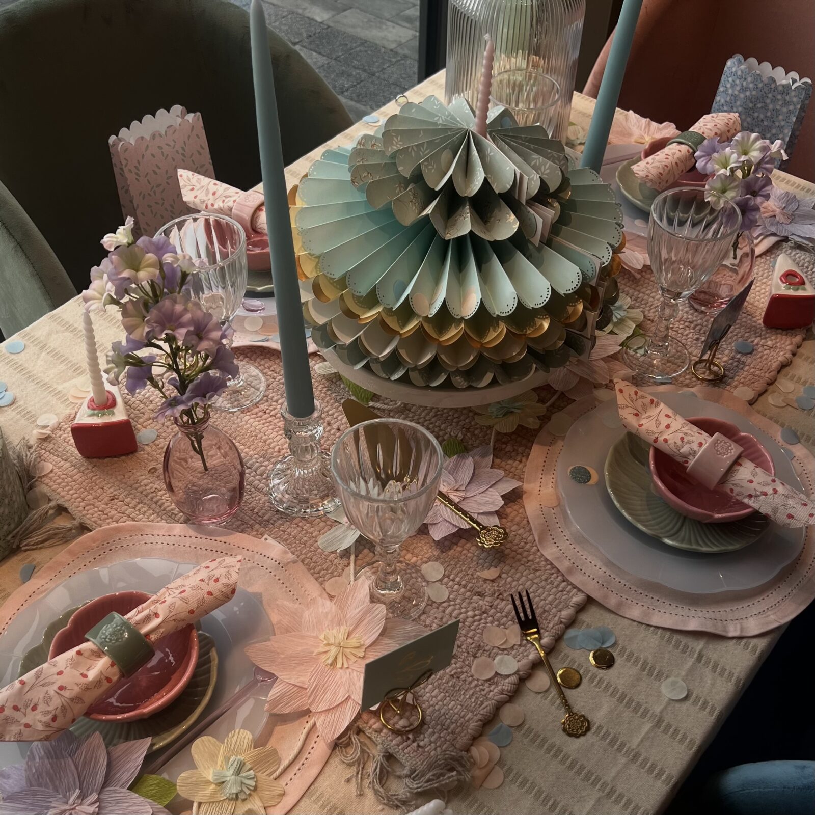 If you’re decorating for an Easter gathering, consider incorporating seasonal elements such as painted eggs, ceramic bunnies, or woven baskets filled with flowers. A pastel-coloured table runner with a floral arrangement in the centre can create a lovely Easter-inspired look. You can also place small nests with decorative eggs along the length of the table for a charming seasonal touch.